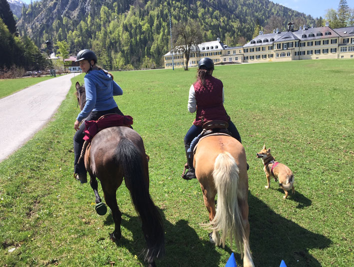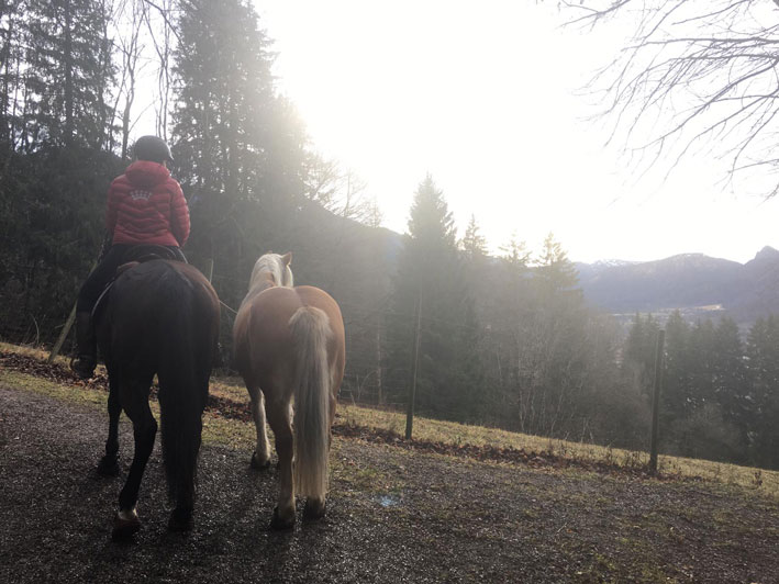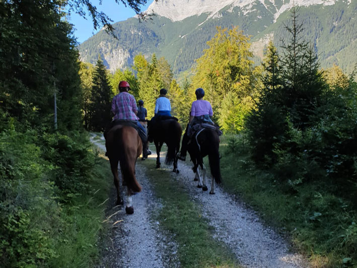wir eine großzügige Schleife durchs Almgebiet geritten sind, treten wir